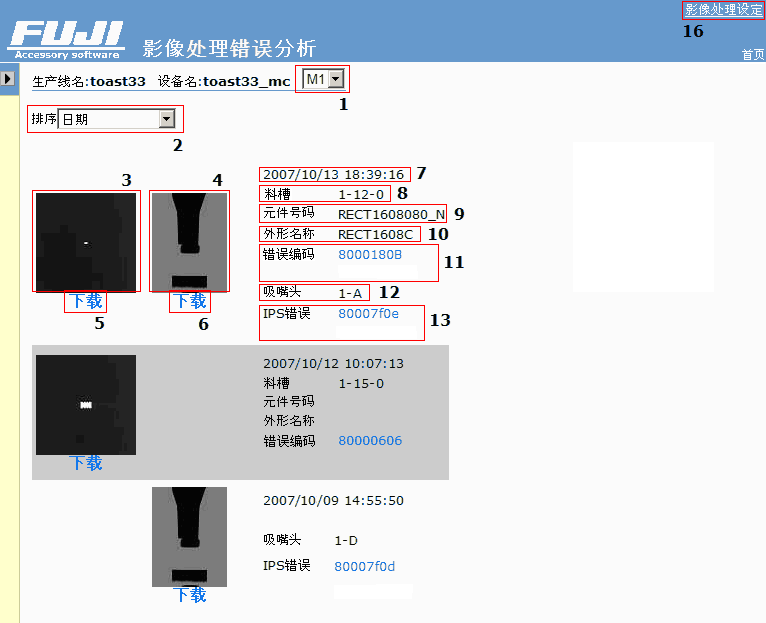 | 11 | 错误编码 | 显示发生元件影像处理错误时的错误编码。点击错误编码后跳到错误内容画面。 |