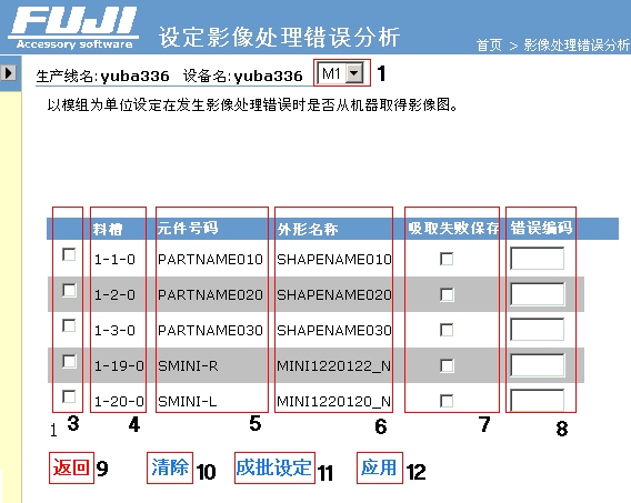 也可以对所有的料槽进行吸取失误保存、监视对象的错误编码的成批设定。