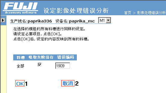 | 3 | 监视选择 | 对要进行影像处理错误监视的料槽进行勾选。 |