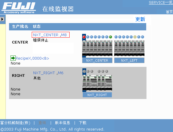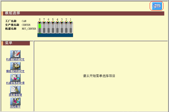 转移到机器设定软件的菜单选择画面。按下右上方的按纽可以返回在线监视器画面。