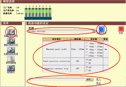 按照以下步骤导入机器功能设定。