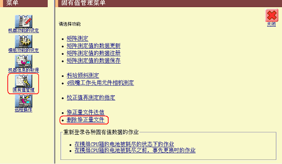 按照以下步骤从机器中删除被记录在机器中的修正量文件。