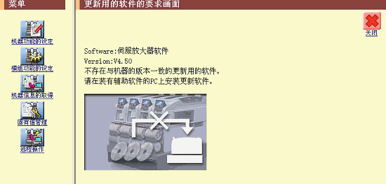 要进行伺服放大器软件的更新时,出现如下所示的软件要求画面。