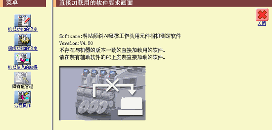 虽然进行了料站倾斜测定用软件的直接加载,但显示出如下所示的软件要求画面。