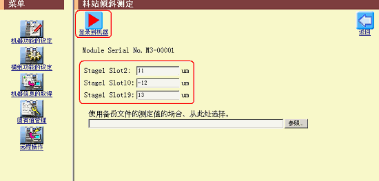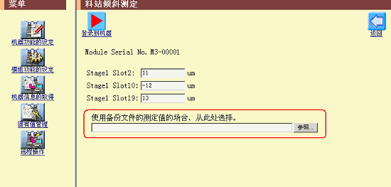 为了进行料站倾斜测定,必须更换机器的专用软件。