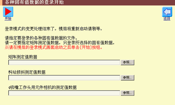 - 点击[登录各种固有值数据] -> [开始]按钮,使模组处于接受各种固有值数据登录的状态。