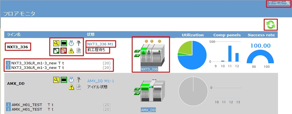 | 7 | SERVICE一览 | 显示SERVICE一览。当在线监视器上显示的生产线构成与实际的生产线构成不一致时,点击此处。 |