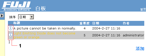 | 3 | 图标 | 所指定的图标,在白板画面的信息一览中显示。从左开始图标的含意分别代表信息、注意、错误、疑问点、提示。 |