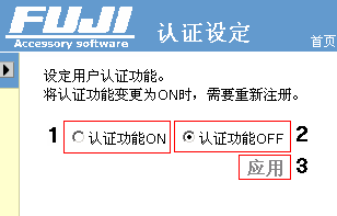 | 3 | 应用 | 将当前所选择的认证模式作为当前的认证模式。如果没有变更当前的认证模式[应用]按钮被灰化,不能够按下。 |
